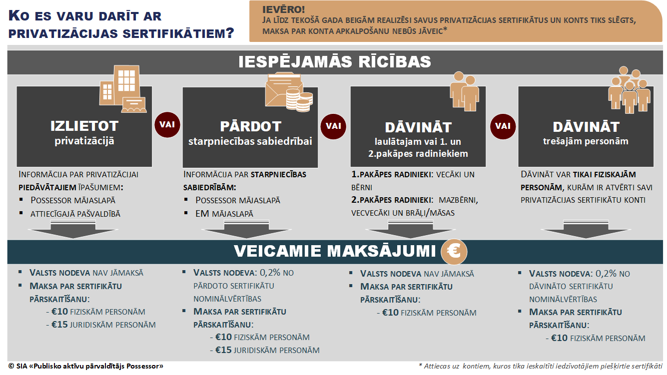 Infogrammu par iespējamām rīcībām ar privatizācijas sertifikātiem skatīt šeit.