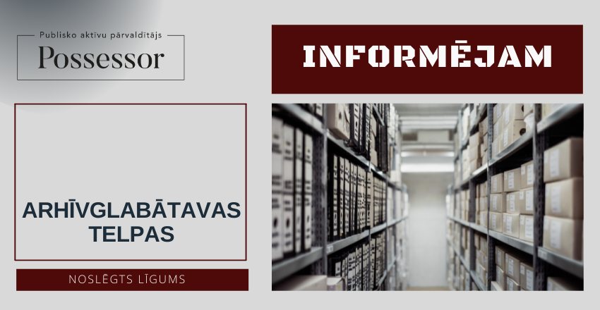 Informējam, ka ir noslēgts arhīvglabātavas telpu nomas līgums ar SIA "Rolands S". Līgumā noteiktā telpu nomas maksa ir 2,50 eiro/m2. Līguma termiņš: no 01.05.2022. līdz 30.04.2027. Mūsu tehniskās prasības un cita informācija ir pieejama ŠEIT.